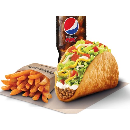 De ultieme combinatie. Een crunchy taco omhuld met kaas en een flatbread. hierbij een cramy jalapeno saus om het af te maken. Menu inclusief een crunchy taco en drank naar keuze.